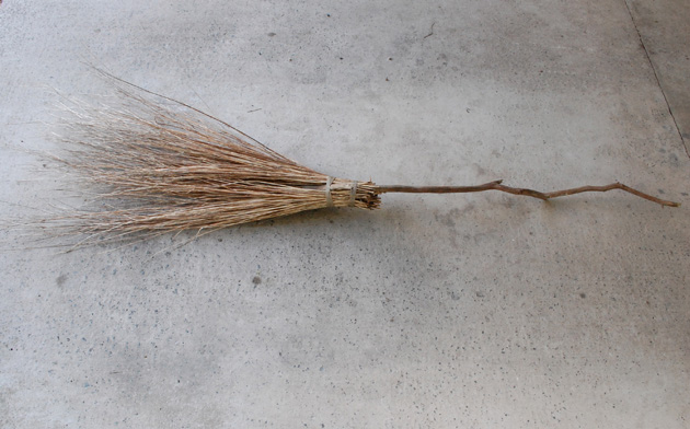 Big broom- dried flower stems, linen thread and branch.