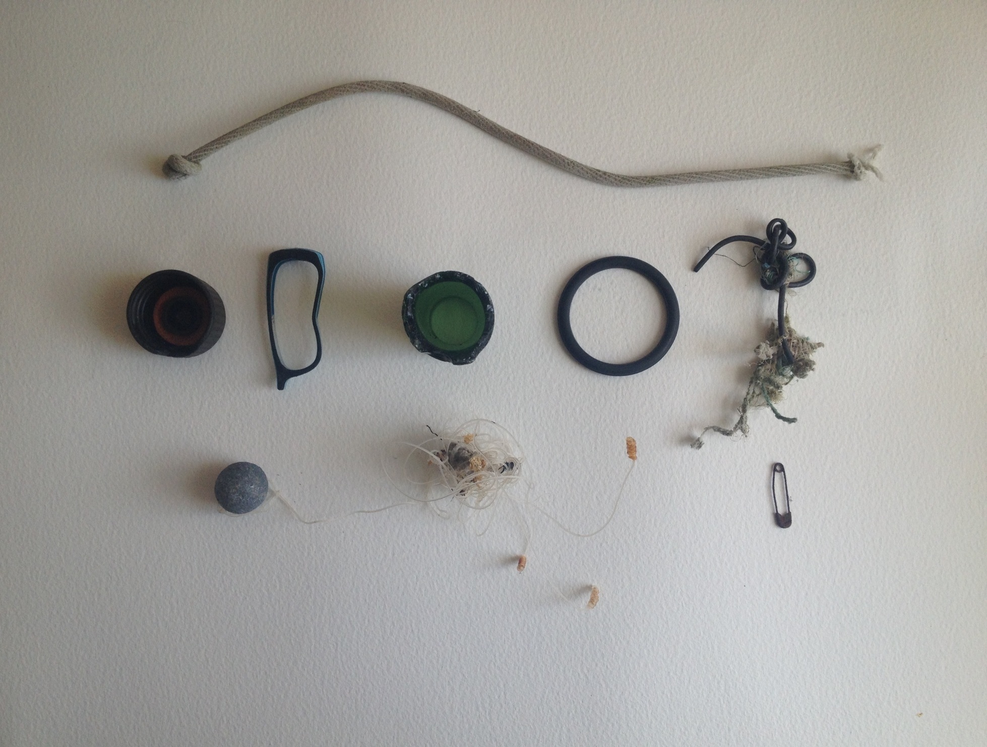 First beach walk after the bad weather and strong winds. Found quite a lot of interesting objects so restricted myself to taking just a few pieces. I am particularly drawn to man made objects that are transformed and washed up on the beach. Objects seen as detritus and rubbish but which I find fascinating when encountered out of context. I also gain a great deal of satisfaction from removing these waste elements off the beach. A somewhat minimal and select cleanup.