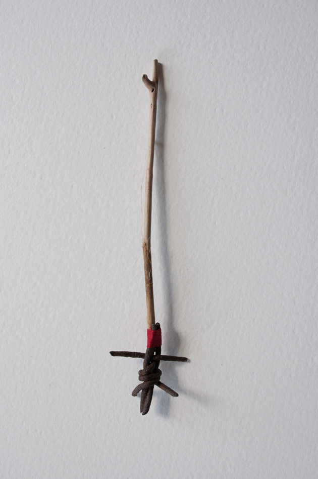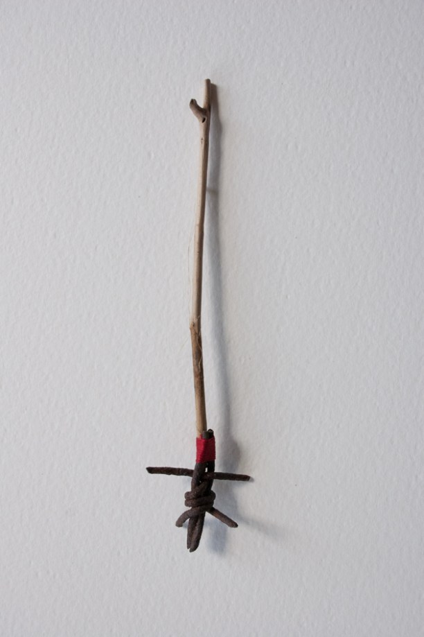 Utensil- barbed wire, thread and wood.