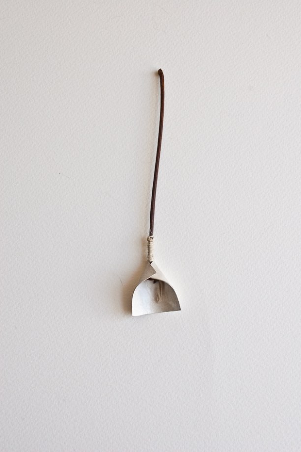 Utensil- chestnut stem, silver and linen.