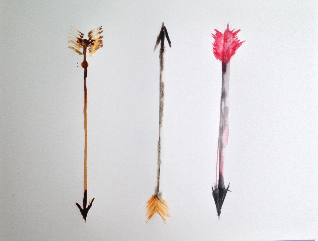 Three – arrow drawing, ink, watercolour on Fabriano 9×12.