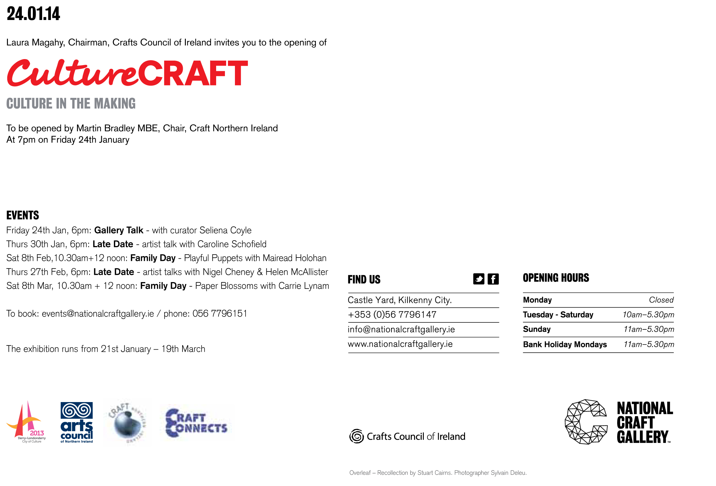The CultureCraft exhibition curated by Seliena Coyle opens tomorrow at the National Craft Gallery of Ireland in Kilkenny and features my set of pieces “Recollections” – a picture of which also features on the invites! It’s a great exhibition in a wonderful space featuring the work of a number of great makers such as Gail Mahon and Rachel McKnight.