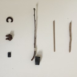 Natural Makers opened at Touchstones Rochdale last week and features two large [for me!] collections of my work. The first is a series of made objects combining found objects and fabricated elements and includes materials such as concrete, silver, steel as well as natural materials and linen thread. The second series is a combination of found objects, complete objects and fabricated material drawings.