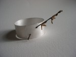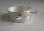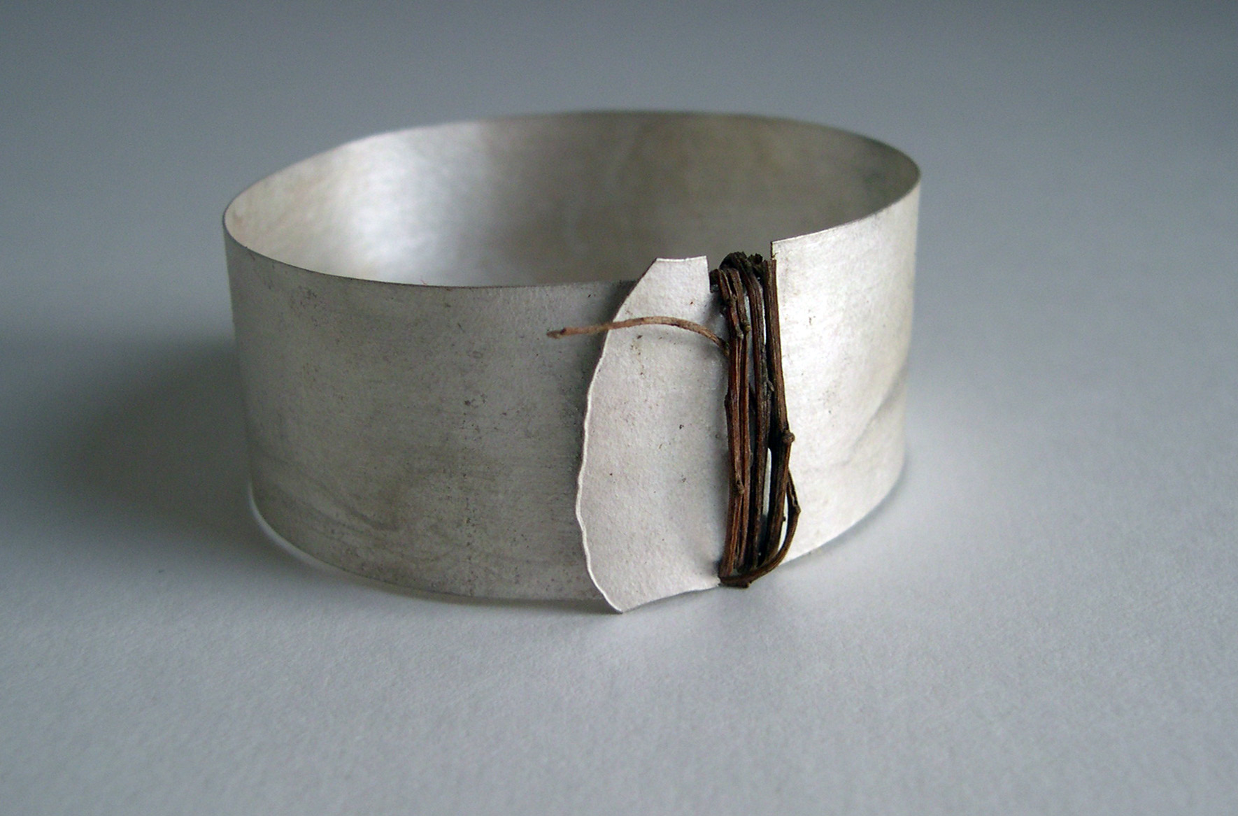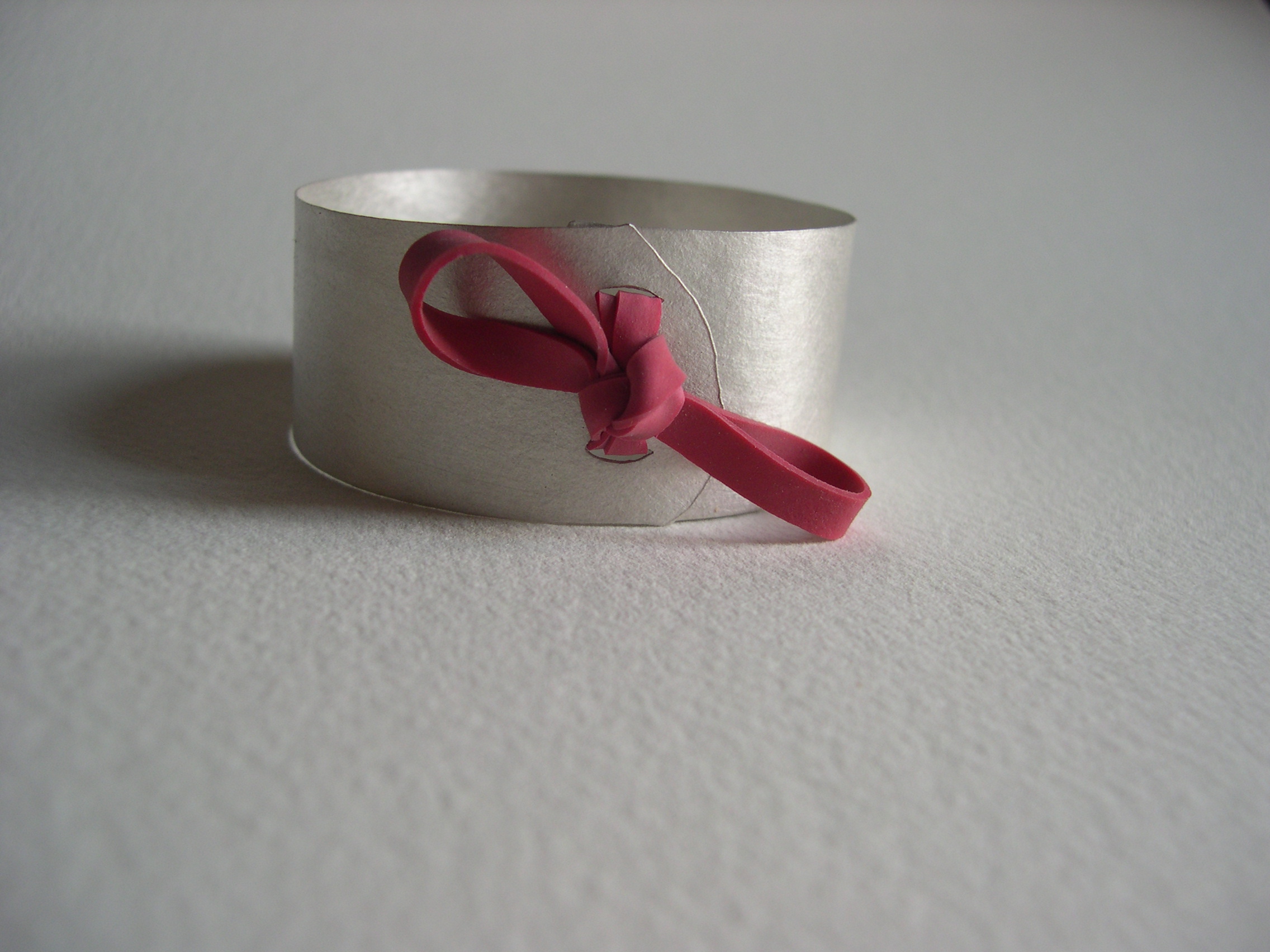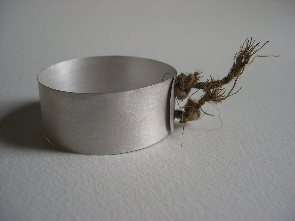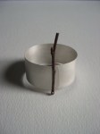 I entered into an exhibition with the Contemporary British Silversmiths a while back- the title was “Ten”. So i took a piece of 1mm silver sheet which was 10cm by 10cm, cut it up into 10 equally sized pieces and milled them into 10 thin strips of silver. I formed these into loops and then used different materials and techniques to close the circles. The silver acted as a “ground” against which the various properties of the materials are highlighted. It was a little silver-centric – but the silver was free and it was a silversmithing exhibition- so I had to sort of behave…