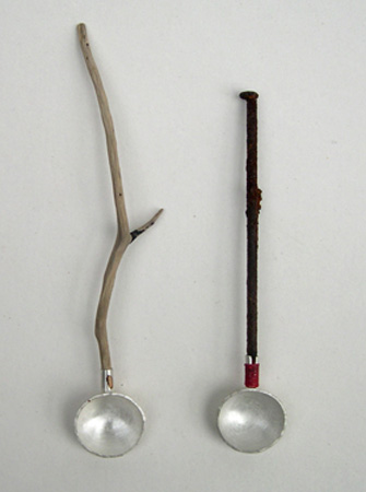 Silver, driftwood, nail, thorn and silk thread. Approximately 15cm long. 2009