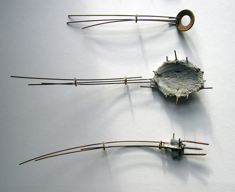 Iron wire, silver solder, concrete and found objects. 2008